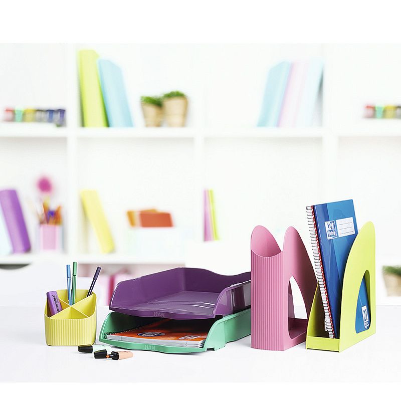 Настольный модуль для бумаг "Re-Loop" предназначен для хранения бумаг формата А4. Материал изделия - 100% переработанный пластик. Эргономичная форма обеспечивает комфортную работу: широкий вырез для оптимального доступа к документам, слегка наклоненная передняя часть, предотвращающая выскальзывание листов. Вся цветовая линейка модулей приятных ярких цветов, что позволит украсить любое рабочее пространство.