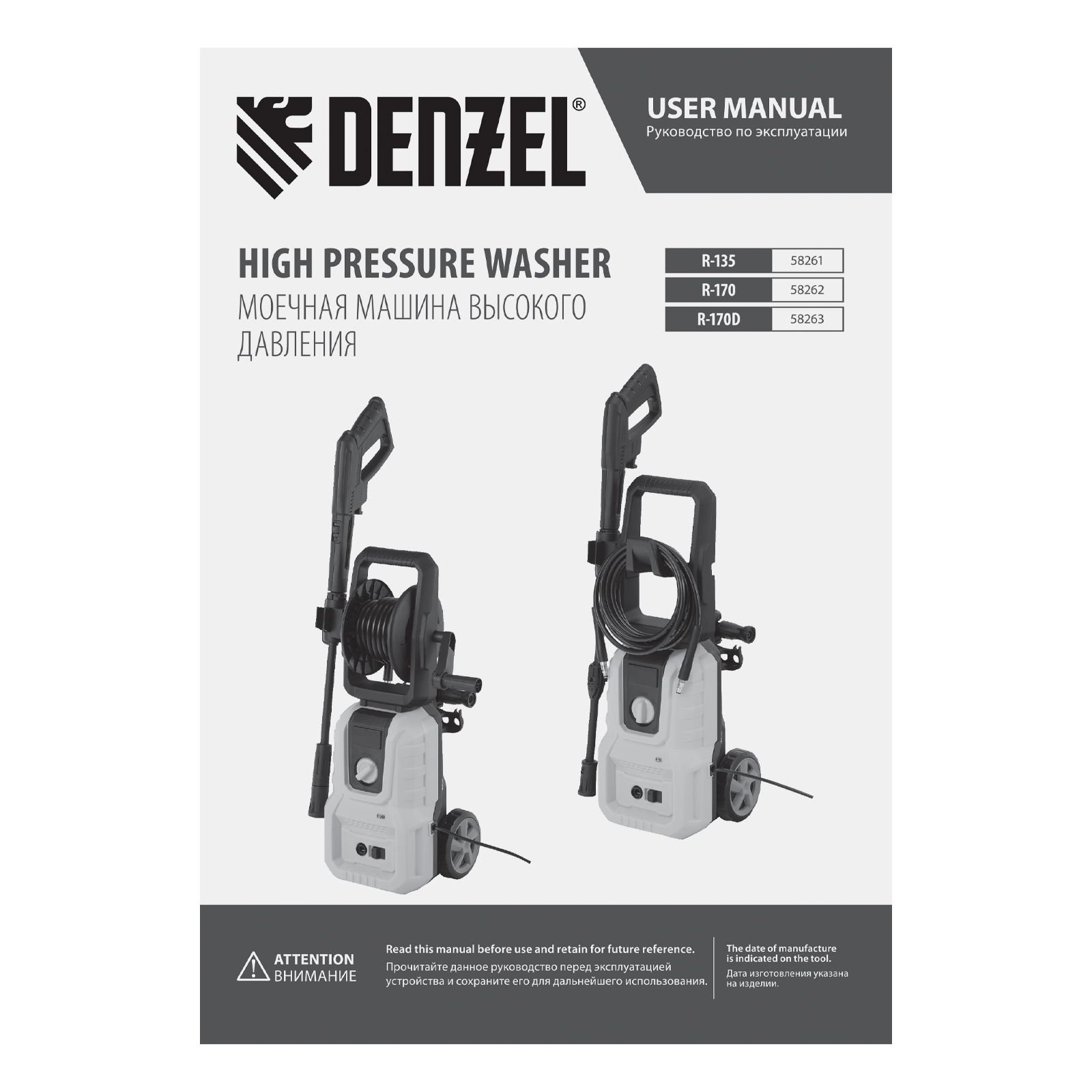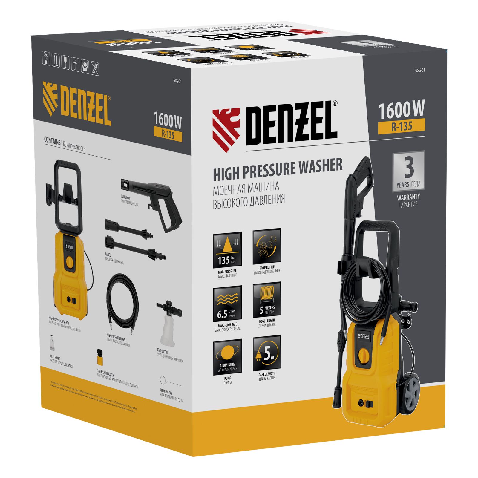 Моечная машина высокого давления R-135, 1600 Вт, 135 бар, 390 л/ч Denzel 58261, описание: