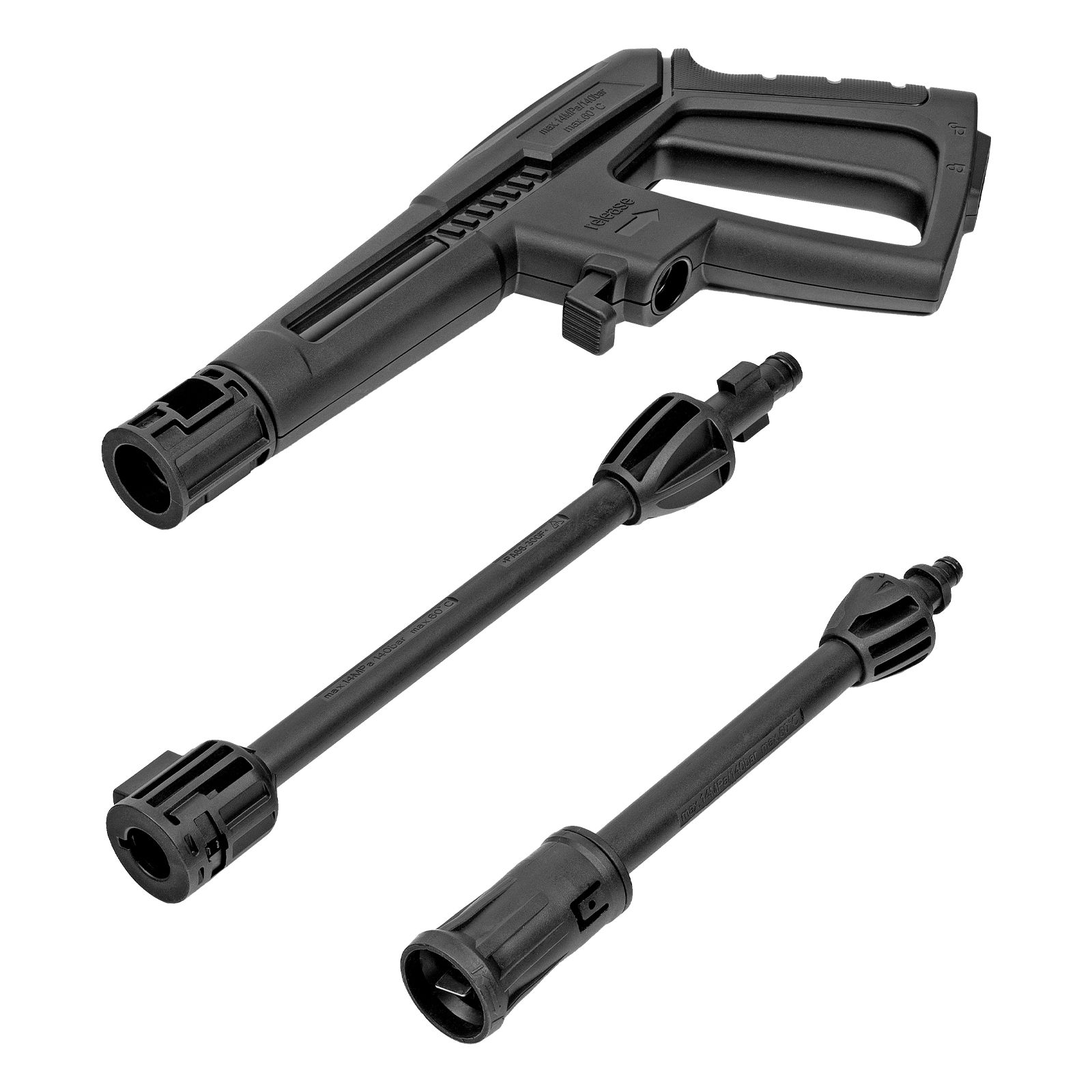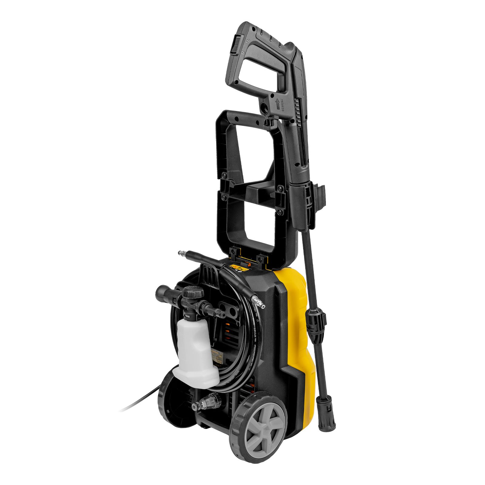 - Безопасность — перед началом работы необходимо разблокировать рычаг моечного пистолета для предотвращения случайного запуска.