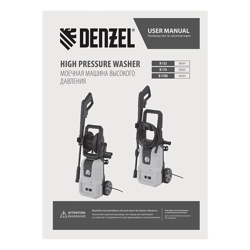 Моечная машина высокого давления R-170, 1800 Вт, 170 бар, 380 л/ч Denzel 58262, описание: