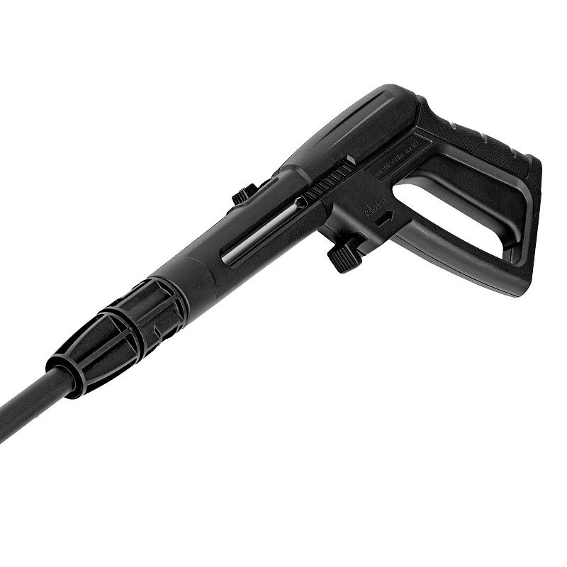 - Безопасность — перед началом работы необходимо разблокировать рычаг моечного пистолета для предотвращения случайного запуска.