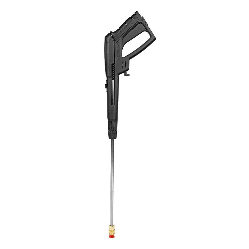 - Защита от случайного пуска — перед началом работы необходимо разблокировать рычаг моечного пистолета.