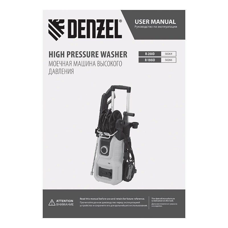 Моечная машина высокого давления R-200D, 2400 Вт, 200 бар, 420 л/ч, с барабаном Denzel 58264, описание: