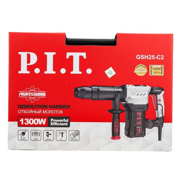 Молоток отбойный SDS-MAX электрич., 1500Вт, 15дж, 4100 уд/мин, 12 полож. зубила PIT GSH25-C2