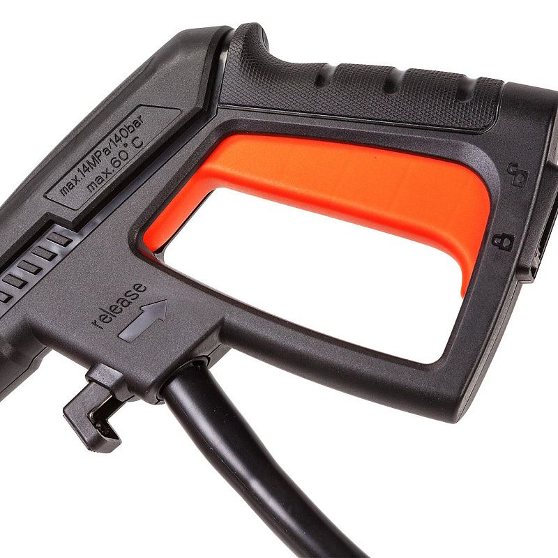 - Высококачественная металлическая помпа обеспечивает максимальное давление 150 бар, что позволяет легко справляться с мытьем автомобиля, фасадов зданий и входных групп, садовых дорожек, велосипедов, мотоциклов и решением других клининговых задач.