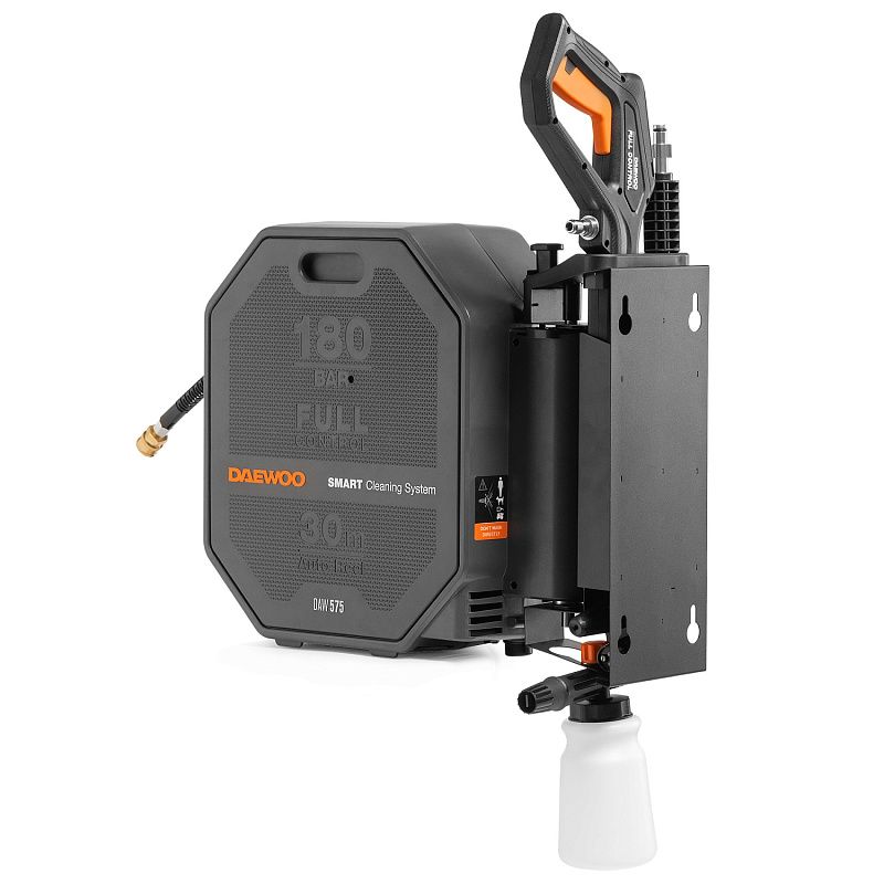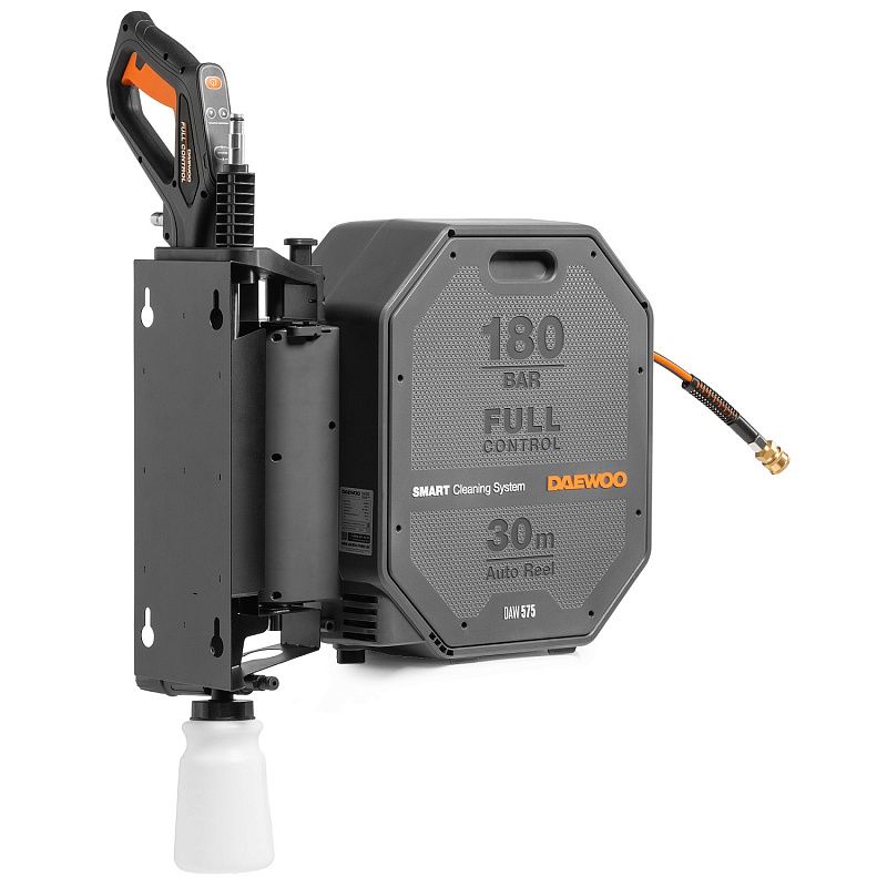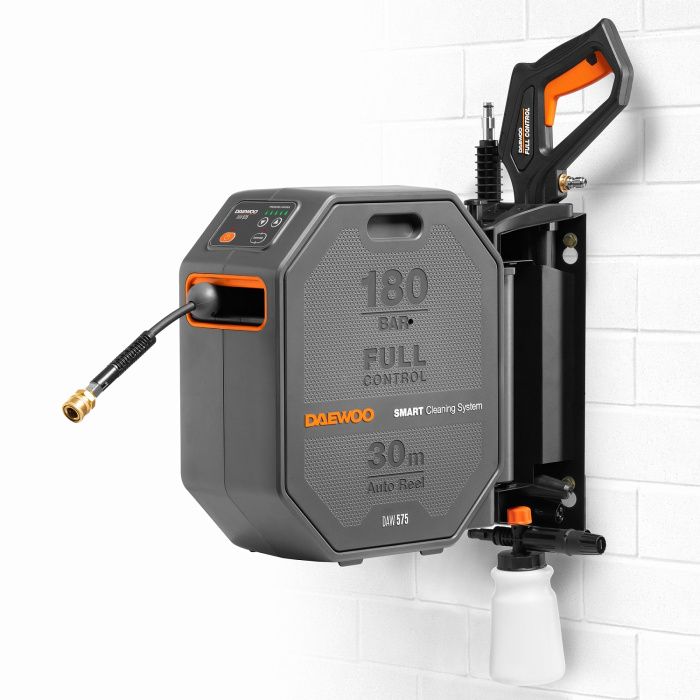- Полный комплект для начала работы. В комплект поставки входят шланг высокого давления длиной 30м, пистолет DAEWOO FULL CONTROL, моющая насадка 3-в-1 (15/25/40), грязевая фреза, входной фильтр, коннектор для садового шланга с аквастопом, поворотный кронштейн для установки на стену.