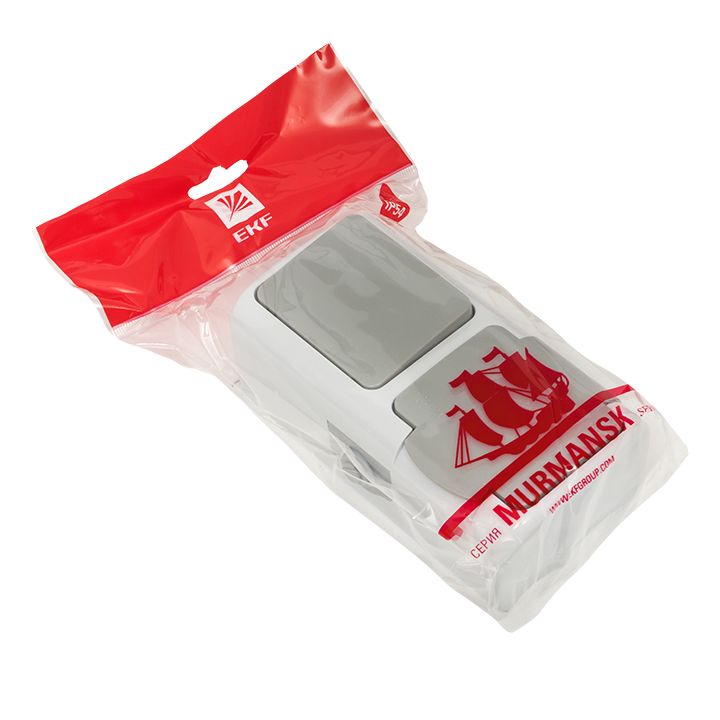 Мурманск Блок розетка 1-м 16А с заземлением с крышкой+ 1-кл выключатель IP54 серый EKF EFRV16-050-30-540