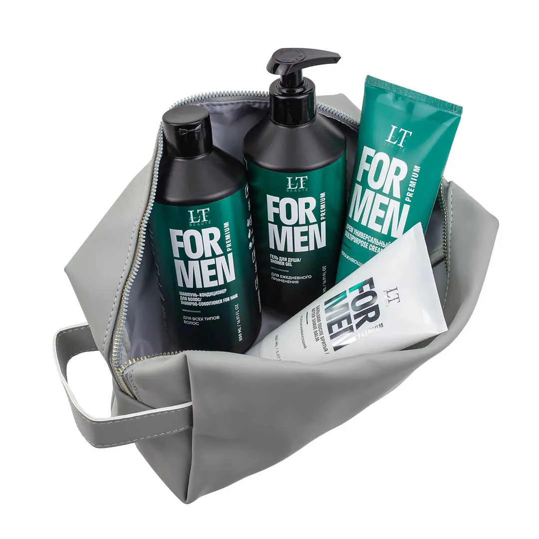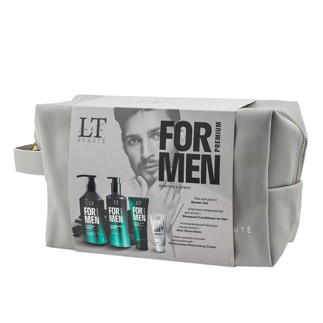 Мужской подарочный набор, гель LT-2357, шампунь LT-2340, крем LT-2388, бальзам LT-2371, bag5, серая уп La and Te beaute LTMEN14