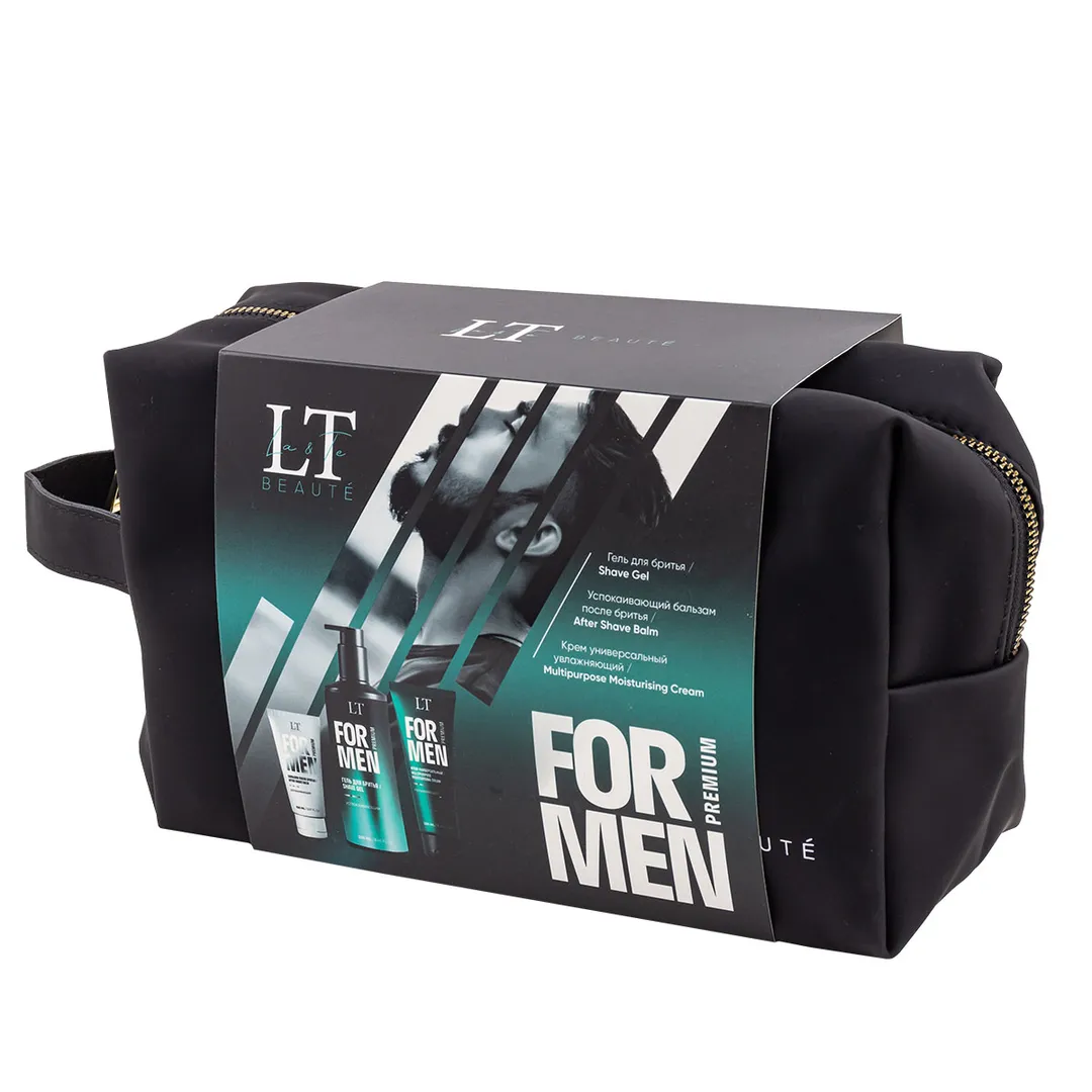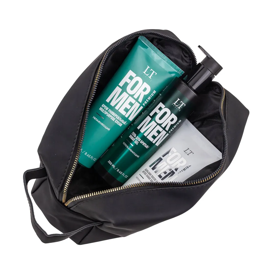 Мужской подарочный набор, гель LT-2364, бальзам LT-2371, крем LT-2388, bag1, черная уп La and Te beaute LTMEN10