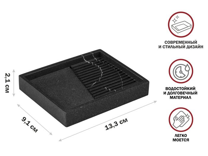 Мыльница ELEMENT MARBLE, черная, PERFECTO LINEA 35-618603