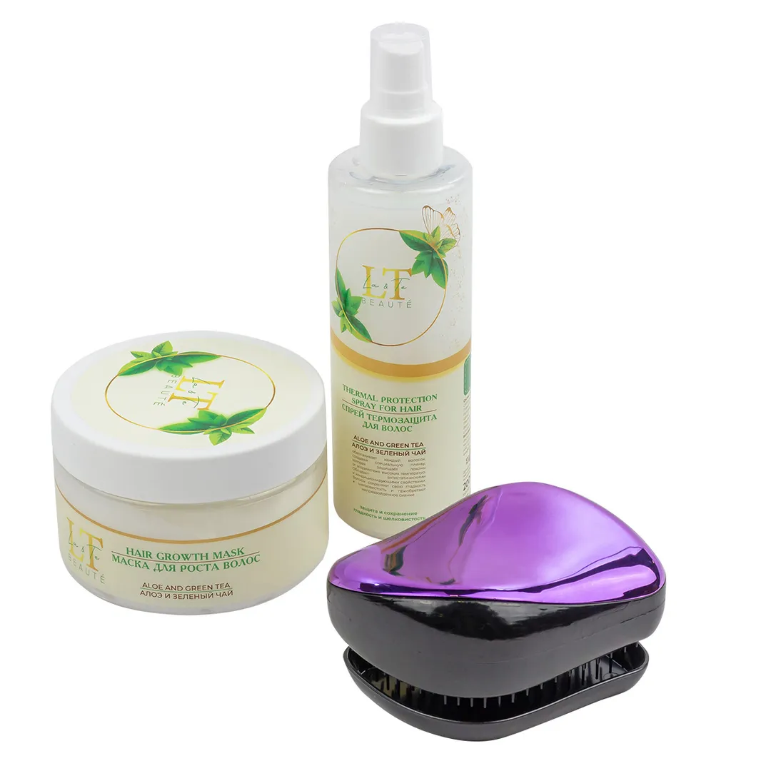 Набор Алоэ и зеленый чай, маска для роста волос, спрей термозащита, расческа La and Te beaute LT-44