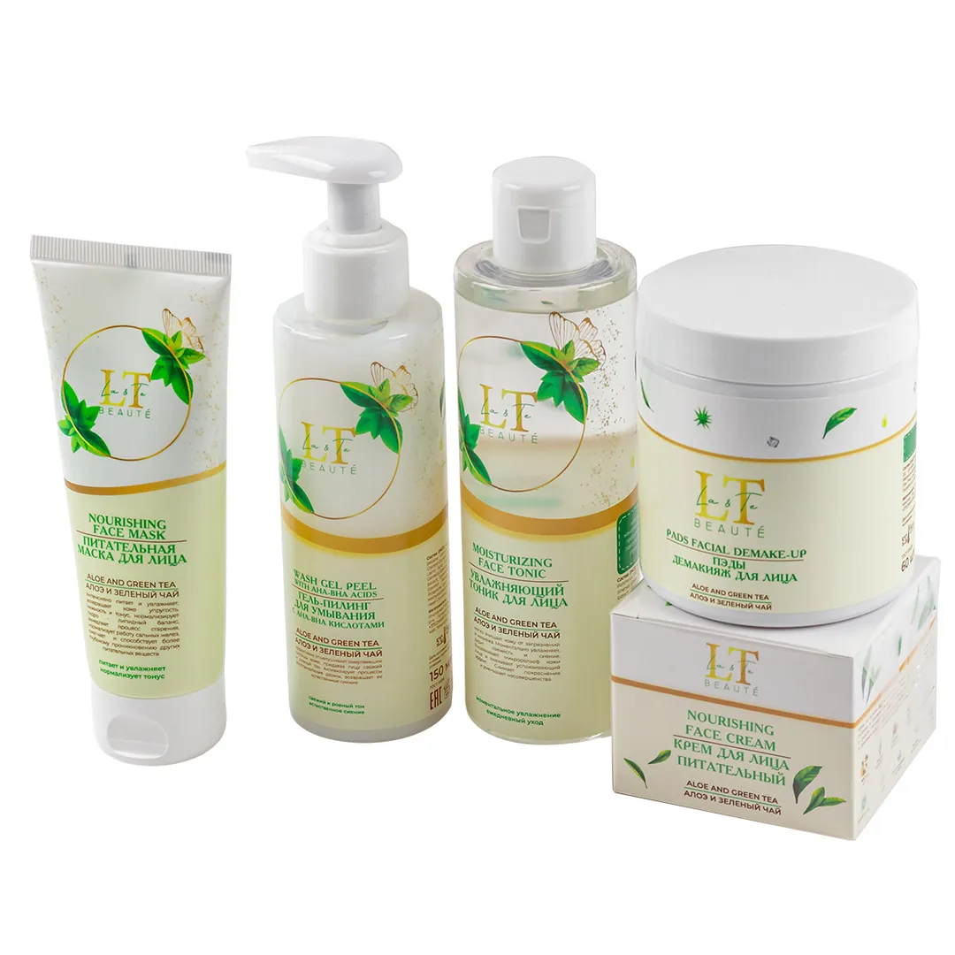Набор Алоэ и зеленый чай, питательная маска, ПЭДЫ, крем для лица, гель-пилинг, тоник для лица La and Te beaute LT-46
