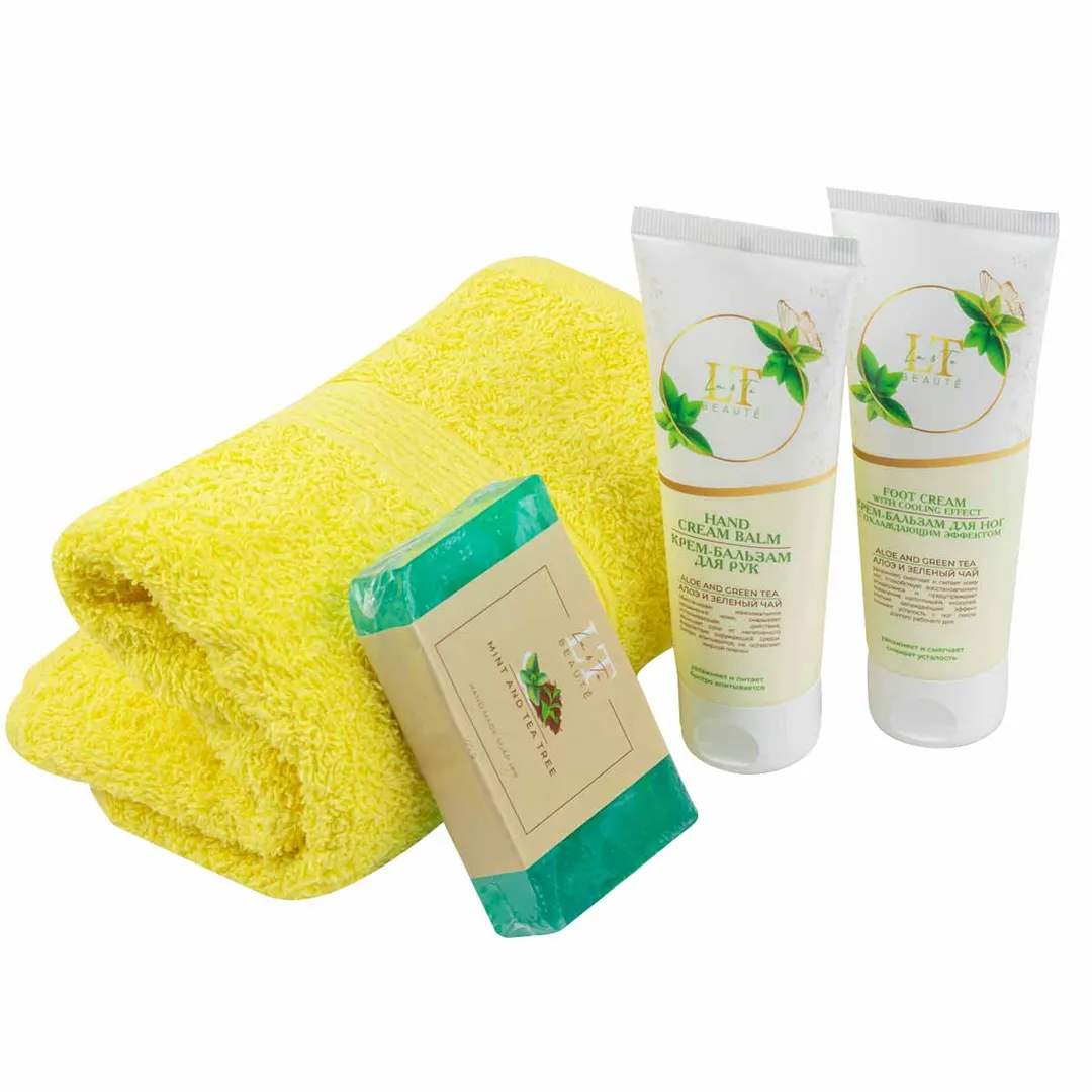 Набор Алоэ и Зеленый чай, термосумка LT-BS2, полотенце в ассотрименте, крем бальзам для рук, крем бальзам для ног, мыло мята и чайное дерево La and Te beaute LT-23Bag