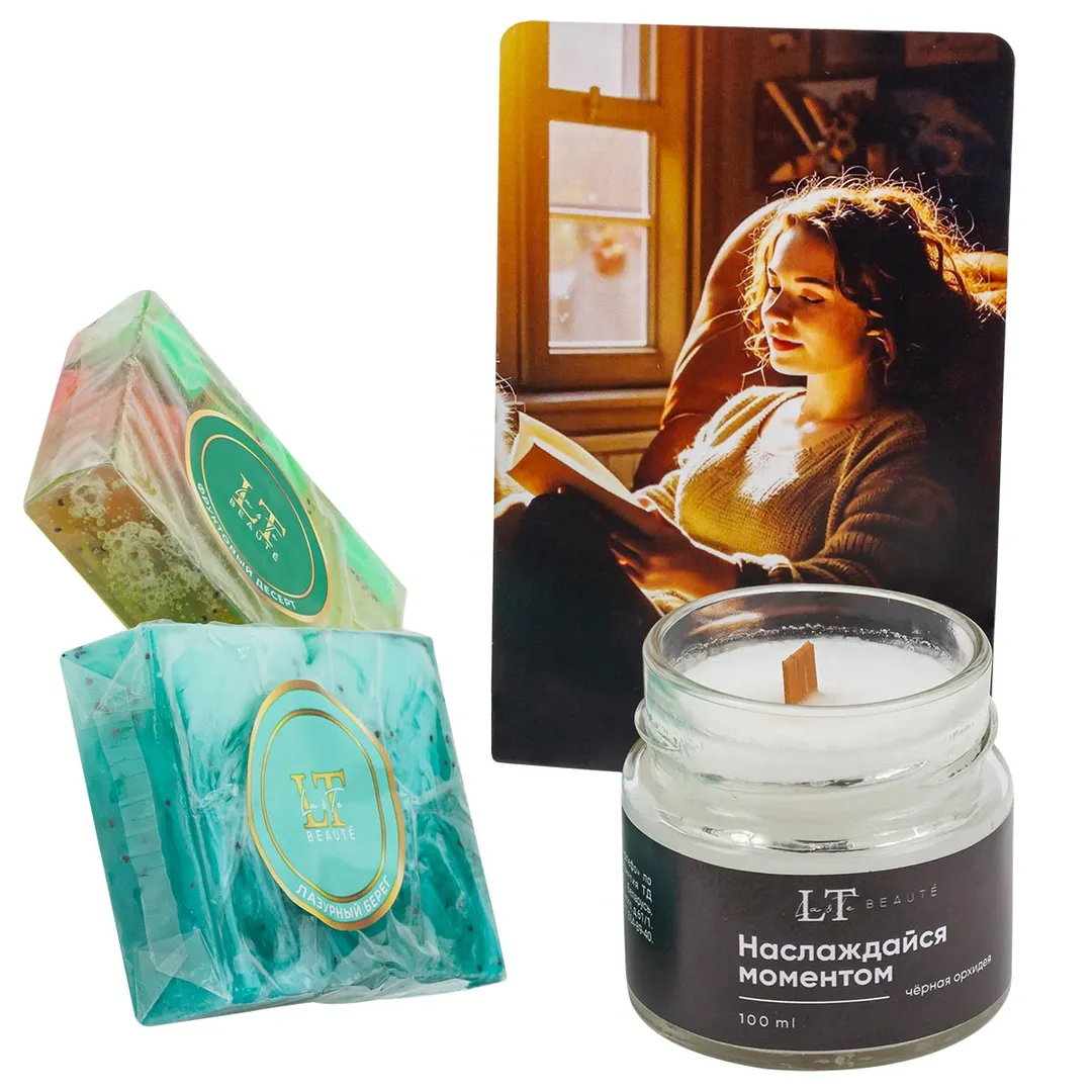 Набор "Атмосфера" свеча ароматизированная Черная Орхидея, мыло ''Лазурный берег'', мыло ''Фруктовый десерт'' La and Te beaute LT-SPA-22