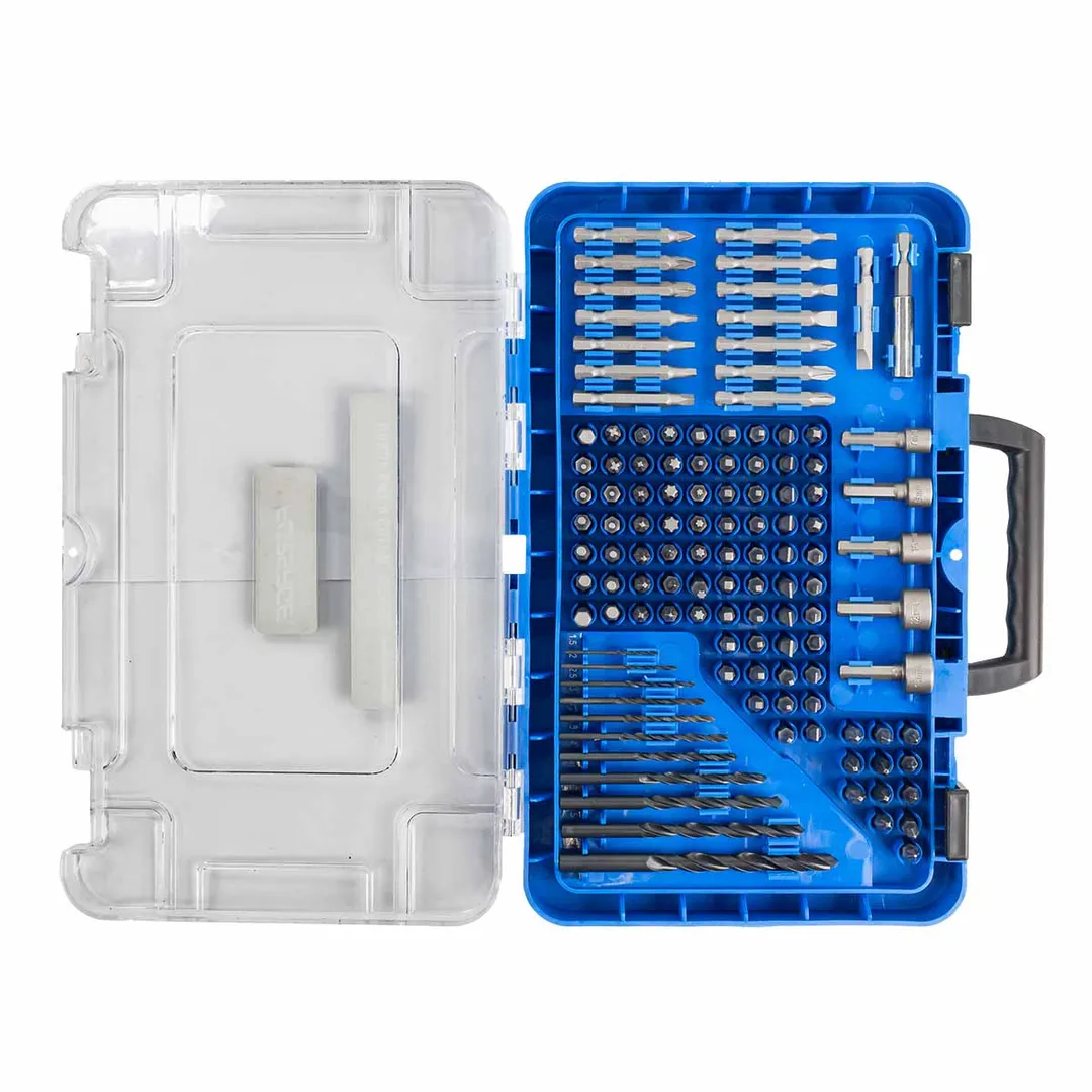 Набор сверл по металлу и бит 120 предметов в кейсе предназначен для сверления отверстий в различных материалах. Он включает в себя сверла различных размеров и типов, а также биты для работы с винтами и шурупами. Сверло изготовлено из высококачественной быстрорежущей стали (HSS), которая обеспечивает высокую стойкость, выдающуюся скорость сверления, простым и точным центрированием и длительным сроком службы. Кейс обеспечивает удобное хранение и транспортировку инструмента, что позволяет сохранить его в хорошем состоянии на протяжении длительного времени. Комплектация: Сверла по металлу 11 шт.:1.5, 2, 2.5, 3, 3.2, 3.5, 4, 5, 6, 6.5, 8мм; Головки под шуруповерт 5 шт.: 7, 8, 10, 12, 13 мм, Магнитный держатель, Биты 1/4" 25мм 88 шт.: SL3*3, SL4*3, SL5*4, SL6*4, SL7, PH0*3, PH1*3, PH2*6, PH3*4, SQ0*3, SQ1*8, SQ2*6, SQ3*6, T8, T10, T15, T20, T25, T27, T30, T40, H2, H2.5, H3, H4, H5, H6, H5/64", H3/32", H1/8", H5/32", H3/16", H1/4"; Биты 1/4" 50мм 15 шт.: PH1, PH2, PH3, PZ1, PZ2, PZ3, SL4, SL5, SL6, SQ0, SQ1, SQ2, SQ3. Размеры: Длина 32 см. Ширина 20 см. Высота 5 см.Преимущества работы с нами