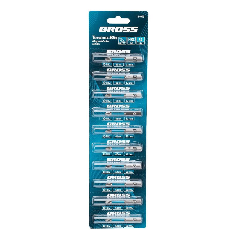 Набор бит торсионных PH2x50 мм, для ударных шуруповертов, отрывн., 10 шт Gross 114093