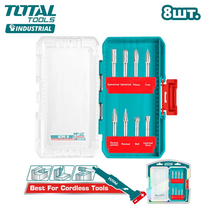 Набор борфрез TOTAL TACSDL10801 (8 шт), описание: