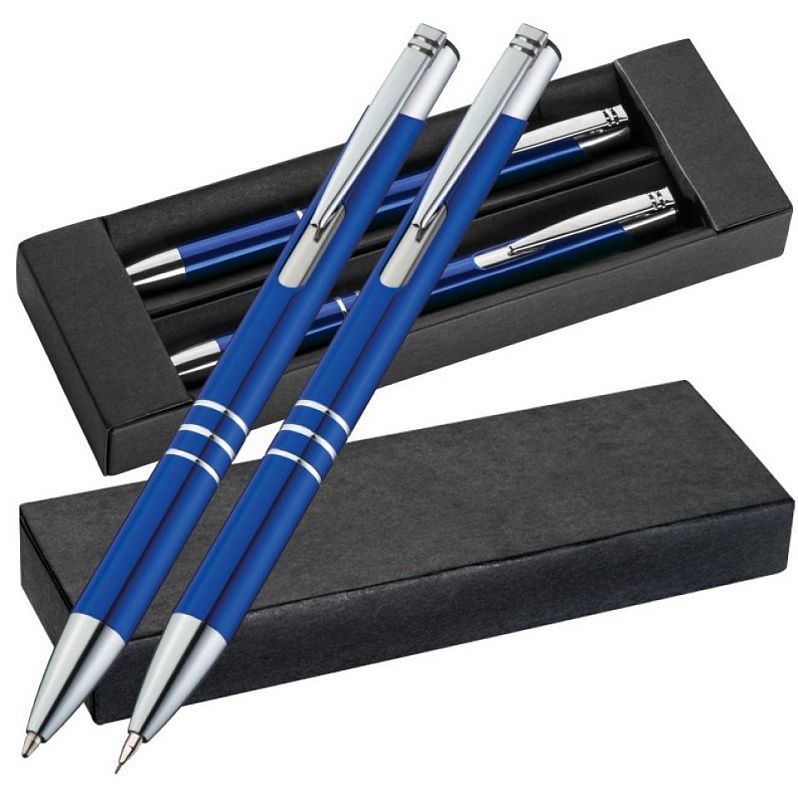 Набор для письма "Claremont" состоит из шариковой автоматической ручки и автоматического карандаша. Ручка с синим стержнем. Набор упакован в футляр с прозрачной крышкой. Размер: 17.59 × 5.8 × 2.8 см.