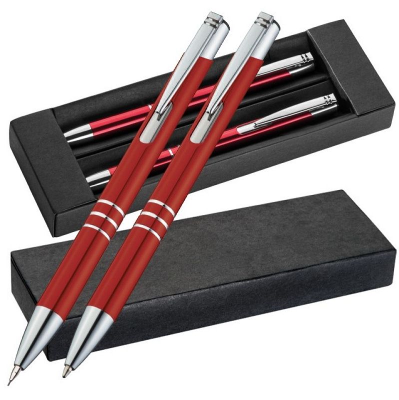 Набор "Claremont": ручка шариковая автоматическая и карандаш автоматический, красный, серебристый
