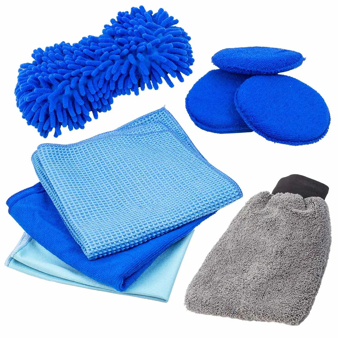 Этот дорожный набор для мойки автомобиля включает в себя 8 предметов из микрофибры, которые отлично справляются с задачами по уходу за автомобилем. Комплект поставляется в удобной сумке 250х180х140 мм, которая позволит легко хранить и использовать аксессуары в любое время. Набор включает в себя: Двухсторонняя варежка для мойки авто 230х170 мм, которая бережно очищает поверхность, не оставляя царапин и разводов, а также моментально впитывает влагу, может использоваться для чистки салона, полировки и сушки кузова; Губка с ворсом для ухода за авто 220х110х50 мм, которая образует обильную пену и отлично справляется с удалением застарелых загрязнений; Три диска для полировки автомобиля диаметром 120мм прекрасно подойдут для нанесения воска и полировки пластика салона; Три салфетки из микрофибры 400х400мм с антистатическим эффектом разного плетения нитей используются при уборке салона автомобиля, чистке стекол и зеркал, а также прекрасно подойдут для протирки очков или рук.Преимущества работы с нами