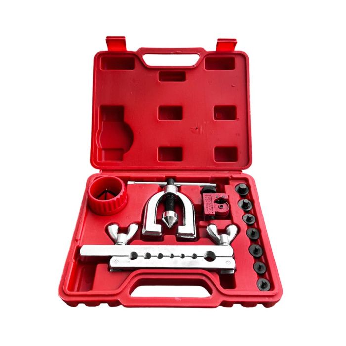 Набор предназначен для односторонней и двусторонней (двойным конусом) развальцовки медных, алюминиевых и мягких стальных трубок тормозной системы под углом 45°.