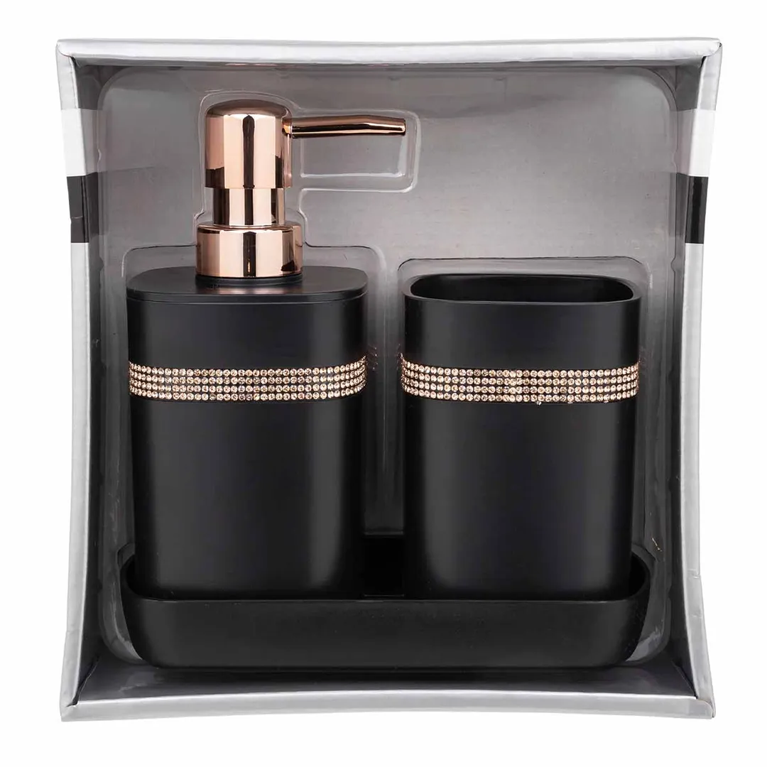 Набор для ванной комнаты 3 пр., дозатор для мыла, подставка для зубных щеток, лоток для аксессуаров La and Te beaute LT-BSP-11BK
