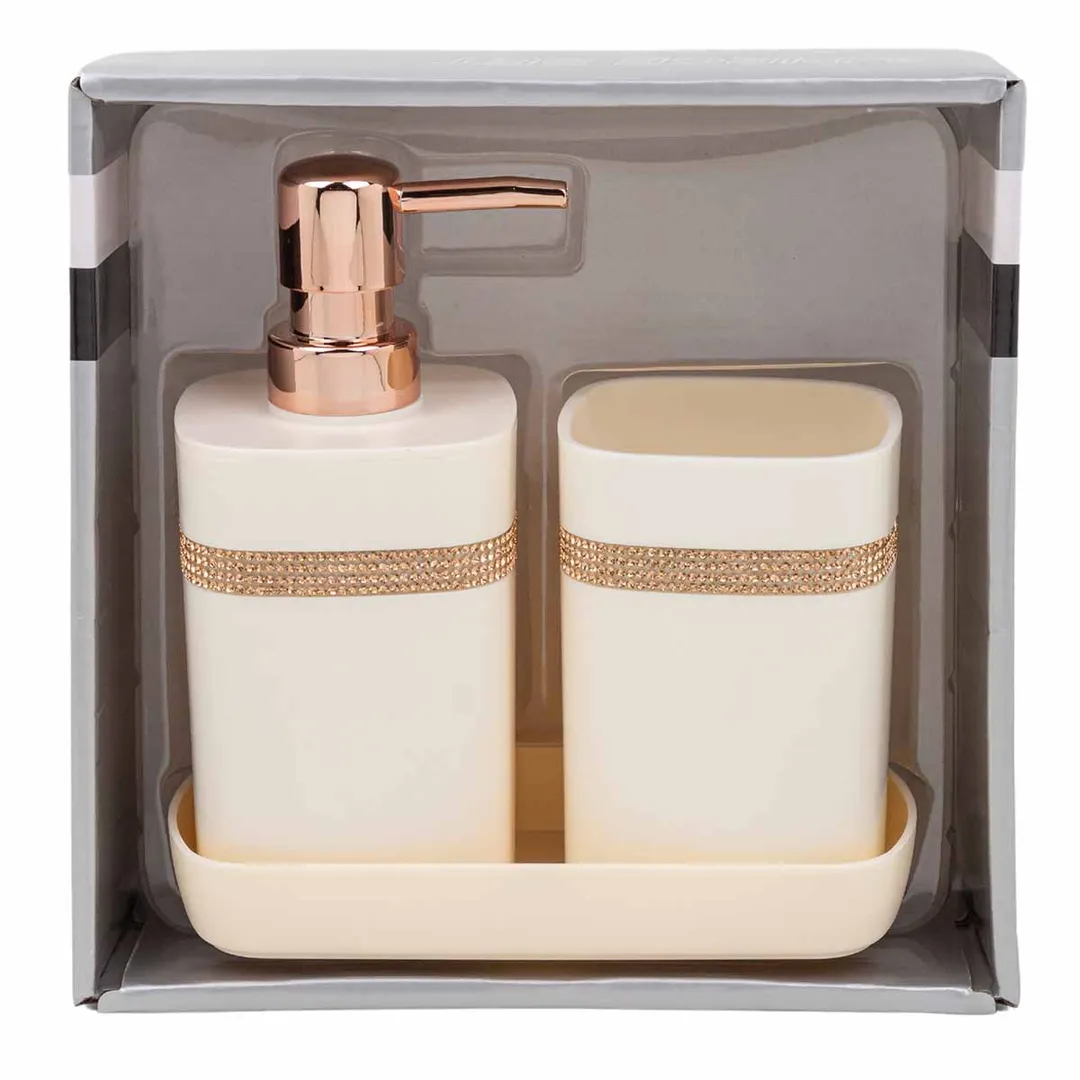 Набор для ванной комнаты 3 пр., дозатор для мыла, подставка для зубных щеток, лоток для аксессуаров La and Te beaute LT-BSP-11WH