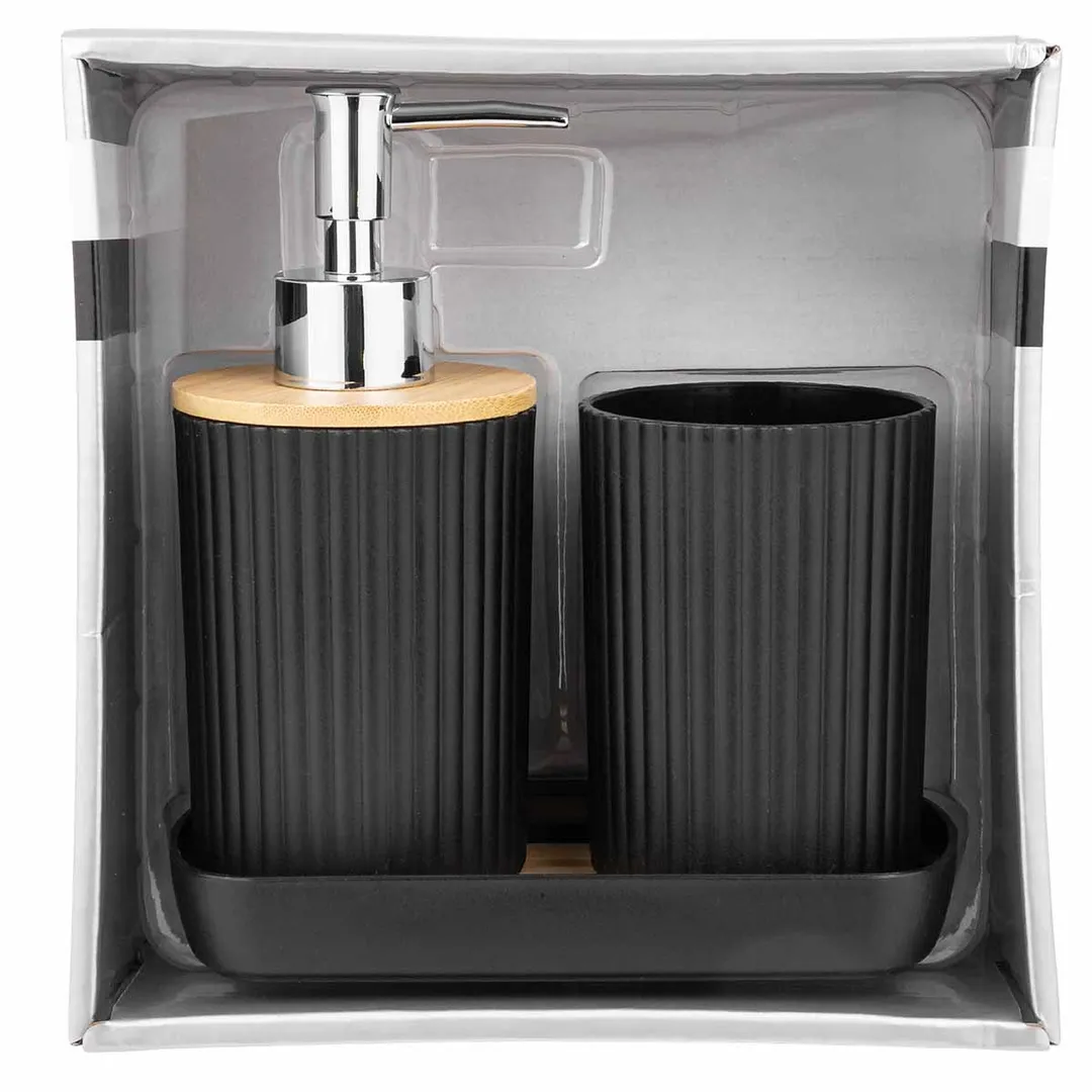 Набор для ванной комнаты 3 пр., дозатор для мыла, подставка для зубных щеток, лоток для аксессуаров La and Te beaute LT-BSP-7BK