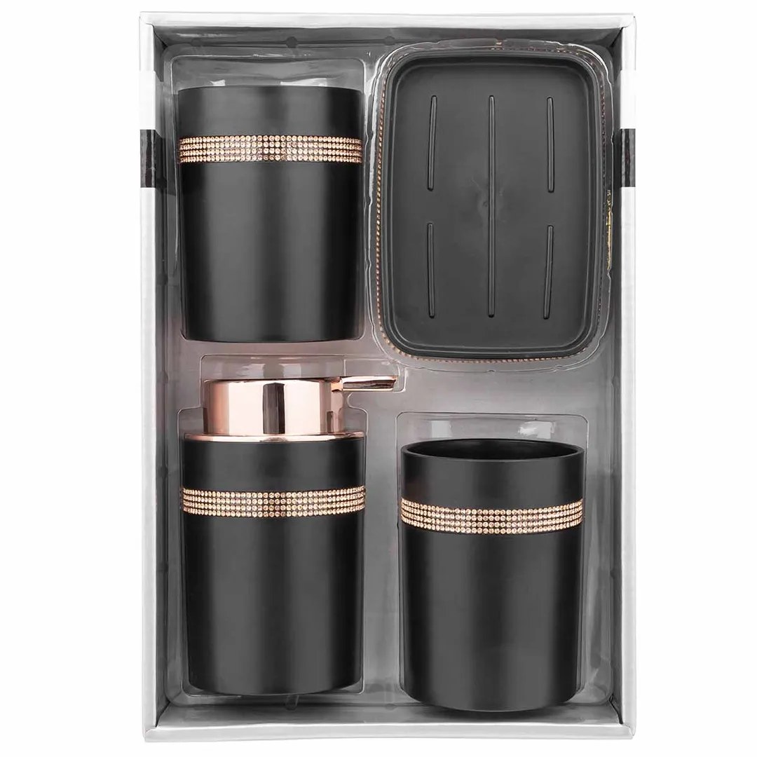Набор для ванной комнаты 4 пр., мыльница, дозатор для мыла, подставка для зубных щеток, подставка для косметических аксессуаров La and Te beaute LT-BSP-4BK