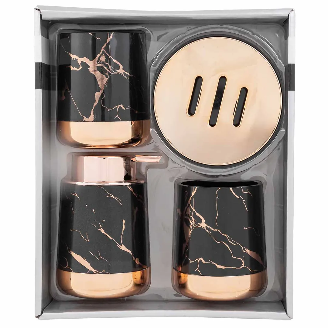 Набор для ванной комнаты 4 пр., мыльница, дозатор для мыла, подставка для зубных щеток, подставка для косметических аксессуаров La and Te beaute LT-BSP-14BK