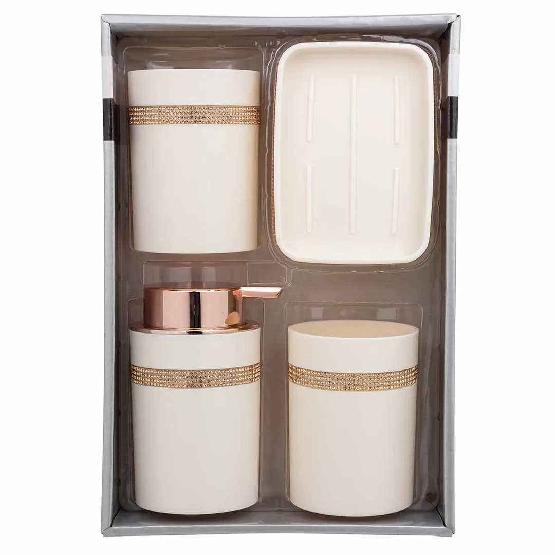 Набор для ванной комнаты 4 пр., мыльница, дозатор для мыла, подставка для зубных щеток, подставка для косметических аксессуаров La and Te beaute LT-BSP-4WH