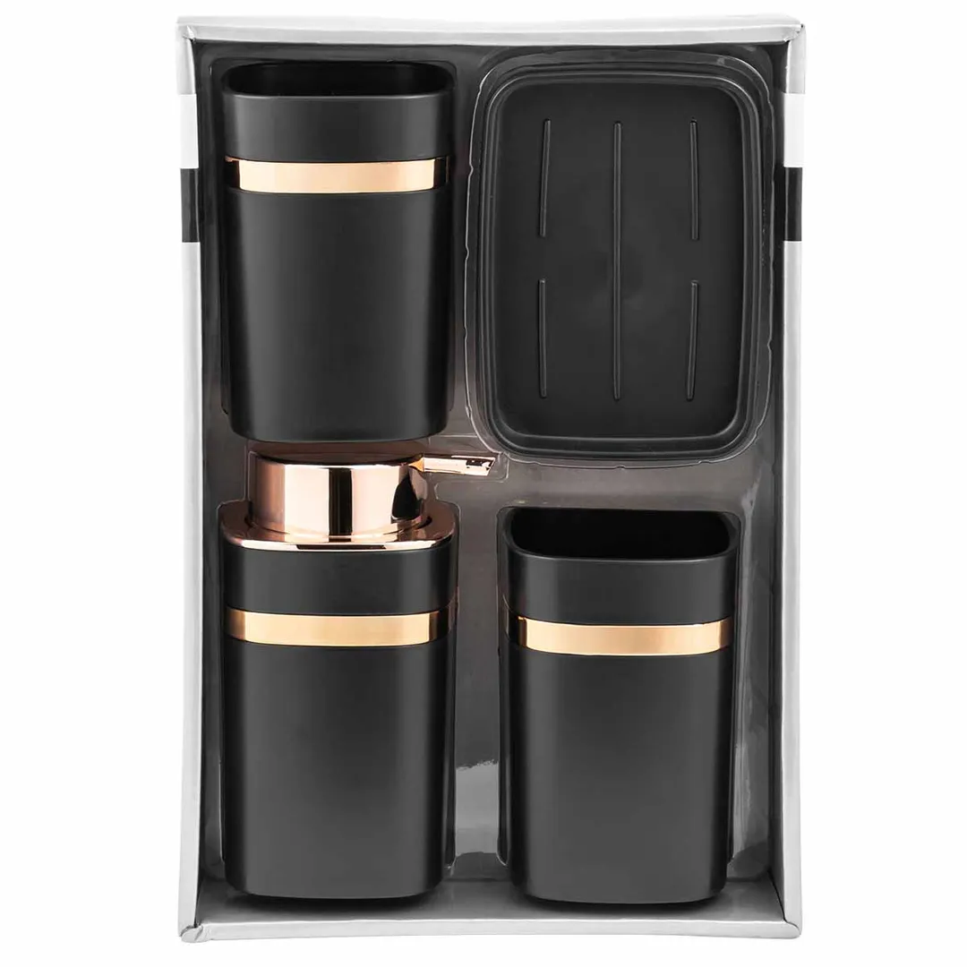 Набор для ванной комнаты 4 пр., мыльница, дозатор для мыла, подставка для зубных щеток, подставка для косметических аксессуаров La and Te beaute LT-BSP-3BK