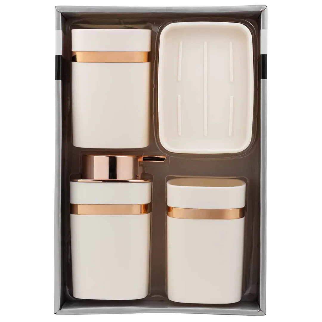 Набор для ванной комнаты 4 пр., мыльница, дозатор для мыла, подставка для зубных щеток, подставка для косметических аксессуаров La and Te beaute LT-BSP-3WH