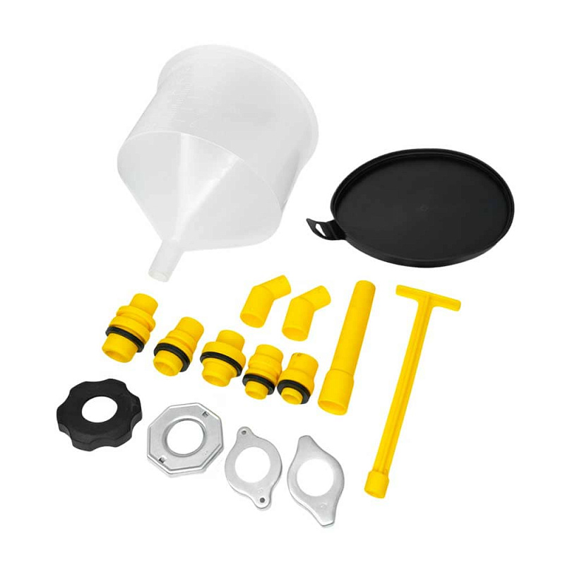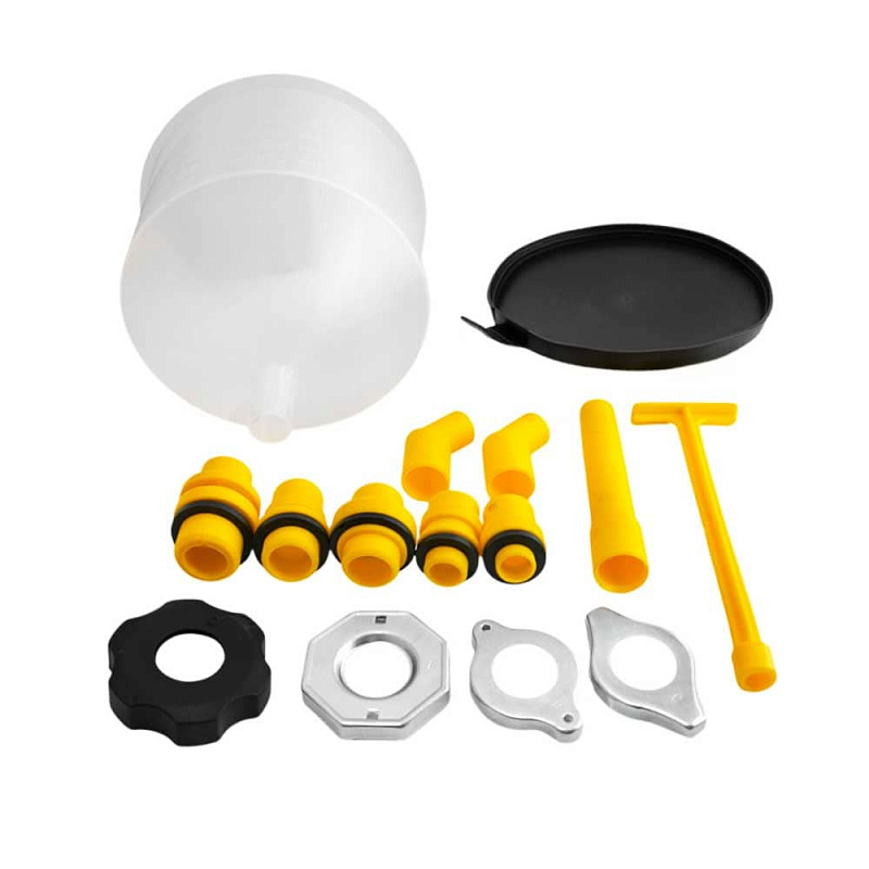 Предназначен заправки охлаждающей жидкости и удаления воздуха, предотвращающей разливы. Прозрачная воронка предназначена для быстрой проверки охлаждающей жидкости и поставляется с крышкой для предотвращения попадания загрязняющих веществ или для хранения крышки радиатора и адаптеров. Благодаря нескольким адаптерам он подходит для большинства моделей на рынке.