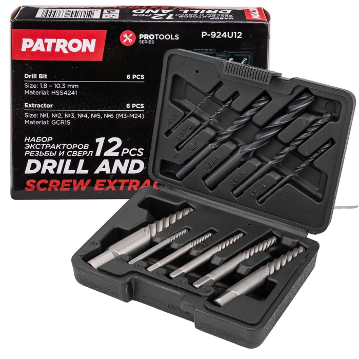 Набор экстракторов резьбы и сверл 12 пр PATRON P-924U12