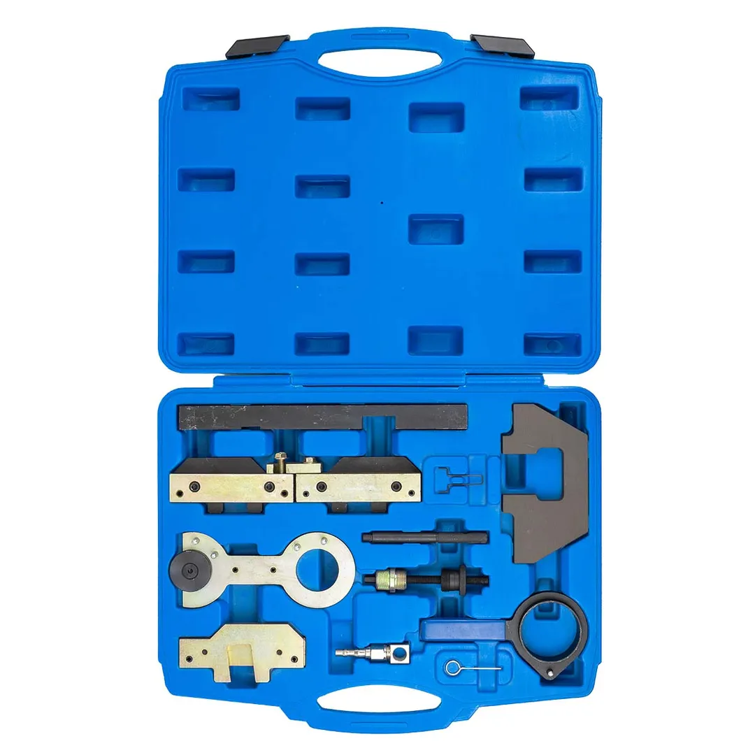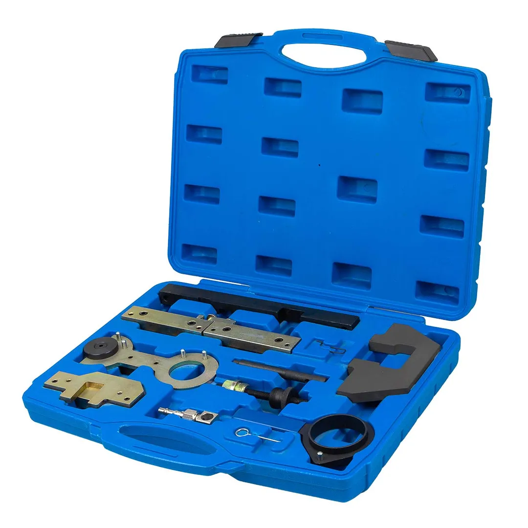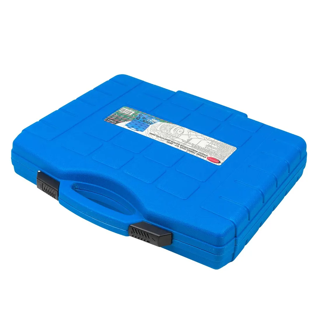 Набор фиксаторов для обслуживания двигателей BMW представляет собой специальные инструменты, предназначенные для облегчения работы при обслуживании двигателей различных моделей BMW. Применяется для установки и регулировки фаз ГРМ. Набор включает фиксаторы, которые используются для фиксации определенных компонентов двигателя в нужном положении во время проведения ремонтных или обслуживающих работ: 1. Фиксаторы распредвала: Используются для фиксации распределительных валов в нужном положении при работе с клапанами, замене ремней ГРМ и других работах, связанных с распределительной системой. 2. Фиксаторы коленчатого вала: Используются для фиксации коленчатого вала в нужном положении при замене маховика, сцепления или выполнении других работ, связанных с коленчатым валом. 3. Фиксаторы ремня ГРМ: Используются для фиксации ремня ГРМ в нужном положении при его установке или замене. Обеспечивают точное позиционирование ремня и предотвращают его смещение. 4. Фиксаторы распредвала и коленчатого вала: Некоторые модели двигателей BMW требуют одновременной фиксации и распредвала, и коленчатого вала для выполнения определенных работ. Такие фиксаторы позволяют обеспечить правильное позиционирование обоих валов. В набор входят следующие приспособления: OEM 11 3 292 - Фиксирующий штифт натяжителя вторичной цепи; OEM 11 4 220 - Имитатор натяжителя первичной цепи; OEM 11 4 230 - Имитатор натяжителя первичной цепи; OEM 11 3 390 - Имитатор гидравлического натяжителя цепи (2 шт.); OEM 11 3 450 - Штуцер для проверки системы Vanos; OEM 11 3 240 - Шаблон для фиксации распределительного вала при регулировке фаз газораспределения; OEM 11 2 300 - Штифт для фиксации коленчатого вала в положении ВМТ; OEM 11 3 290 - Фиксирующий штифт натяжителя цепи; OEM 11 3 190 - Шаблон для фиксации распредвала; OEM 11 5 490 - Ключ для проворачивания шестерни при снятии и установке исполнительного узла системы. Предназначены для использования в автосервисе, СТО, на шиномонтаже.Преимущества работы с нами