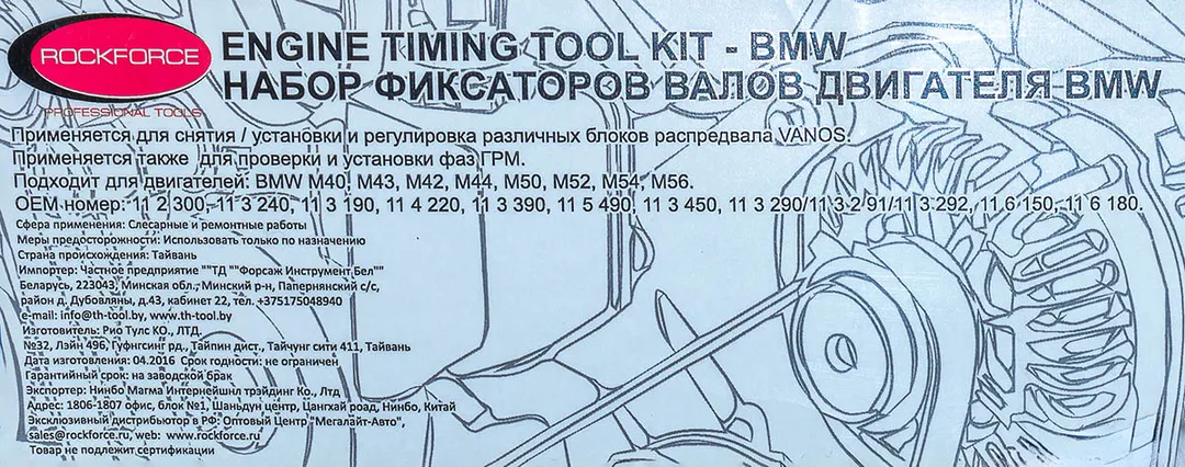 Набор фиксаторов для обслуживания двигателей BMW 11 пр. RockForce RF-908G10, описание и характеристики: