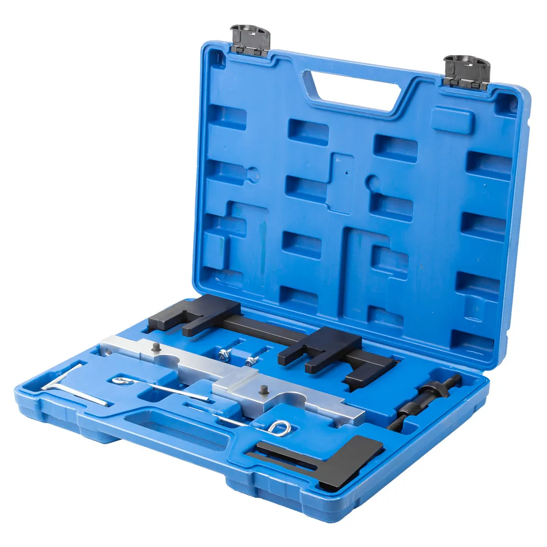 Набор инструментов ROCKFORCE для правильного сервиса синхронизации двигателя BMW 1, 3 и 5 серий с цепным приводом двигателей, 7 предметов в кейсе - служит для стопорения подвижных деталей двигателя. Этот набор инструментов был разработан для проверки, регулировки и установки времени распределительного вала, а так же удаления и замены цепи кулачка, включает в себя необходимые детали инструмента блокировки, практичный и экономичный. Подойдет для: BMW 1 серии (E81/E82/E87/E88, 2006-2012 гг.), BMW 3 серии (E90 / E91 / E92 / E93, 2006-2012), BMW 5 Series (E60 / E61, 2007-2010), для двигателей (N43 (B16A/AA), N43 (B20A), N43 (B20AA) N43 (B20AY), N43 (B20KO), N43 (B20UO)). Все приспособления выполнены из сверхпрочной углеродистой стали, высокопрочной и долговечной, обеспечивающей длительный срок службы. Комплектация: инструмент для фиксации распределительных валов, инструмент для фиксации колес датчиков системы, инструмент для фиксации балансирных валов, фиксатор коленвала, штифты для фиксации натяжителя приводной цепи, фиксатор натяжения цепи, кейс. Информация предоставлена заводом изготовителем. Все детали хорошо упакованы в пластиковый чехол для удобного хранения и транспортировки.Преимущества работы с нами
