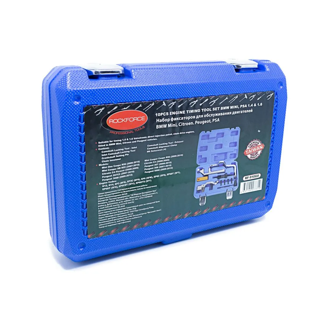 Набор фиксаторов для обслуживания двигателей BMW, Сitroen, Peugeot MINI, PSA 10пр, 1.4, 1.6, 1.4VTi, 1.6VTi 16V RockForce RF-910G8