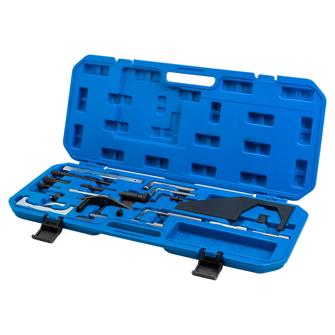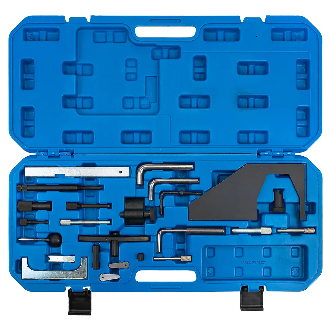 Набор фиксаторов для двигателей (Ford, Mazda), в кейсе. Набор предназначен для регулировка фаз ГРМ. Применение: для бензиновых Duratec и дизельных Duratorq двигателей. Бензиновые: 1.25, 1.4, 1.6, 1.7, 1.8 и 2.0 Twin Cam 16V, Mazda CX-7 с двигателем L3 2.3л Turbo. Дизельные: 1.4, 1.6 TDCi, 1.8 Di/TDCi/TDdi, 2.0 TDCi. Так же подходит для двигателей Duratorq - Mazda 2, 3 и моторы PSA 1.4, 1.6 с индексом Hdi. Комплектация: Фиксатор распредвала (303-1061). Фиксатор коленала (310-085). Фиксатор маховика (303-1059). Фиксатор шестерни распредвала (303-735). Фиксатор маховика (303-393). Установочная планка для распредвалов (303-376). Адаптеры фиксатора маховика (03 39 301/303 39 302). Фиксатор шестерни ТНВД (23-019). Фиксатор 9,5 мм (21-123). Фиксатор 12,7 мм (21-020). Фиксатор шестерни ТНВД (T20102). Натяжитель ремня привода ГРМ (310-084). Стопор для шкива ТНВД (23-047). Пластина для фиксации распредвалов (прямая). Щупы 0,2 и 0,3 мм. Поставляется в прочном пластиковом кейсе. В наборе 24 предмета, что позволяет максимально комфортно работать в автосервисе и гараже.Преимущества работы с нами