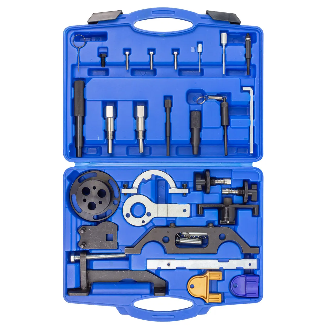Набор инструментов синхронизации двигателя для Opel для Vauxhall для GM 1,3 CDTI 16V, 1,9 CDTI, 2,0 DTI, 2,2 DTI Комплексный набор для блокировки распредвалов и коленчатых валов. Также для удаления и установки инжекционных и водяных насосов при смене ремня ГРМ. Подходящий Двигатель: Для дизельного двигателя: 1,3 CDTI 16V, 1,9 CDTI, 2.0DTI, 2.2DTI ForAgila, Combo-C, Corsa, Frontera, Omega, Sintra, Tigra Для бензинового двигателя: 1,0 12V/1,2 16V (с 97) 1,4/1,6/1,8/2,0/2,2 16V (с 95) Для Agila, Combo-C, Corsa, Frontera, Omega, Sintra, Speedster, Tigra, Vectra, Zatira Комплектация Блокировка водяных насосов Инструмент для фиксации распределительного вала Инструмент для фиксации распределительного вала Двухшпиндельная цепь и звездочка Einstelllehrenadapter Инструмент блокировки коленчатого вала для крепления маховика в положении TDC, а также для проверки и регулировки времени клапана Манометр для импульсного колеса Держатель маховика Инструмент для блокировки коленчатого вала Крепежные винты, 3 шт. M6 x 30 мм Фиксатор зубчатой цепи Дуплексная цепь и звездочка Фиксаторы распределительного вала, 2 шт. Инструмент для блокировки распределительного вала, для блокировки распредвалов, а также управления и регулировки зазора клапана Замок распределительного вала в положении TDC Инструмент для фиксации распределительного вала Выравнивание распределительного вала Замок коленчатого вала (позиционирование OT) Коленчатый вал Arretierdornzu (OT позиционирование cyl. 1) Адаптер для инструмента блокировки коленчатого вала Блокировка впрыска 6/8 мм Фиксатор натяжения цепи 4,0 мм Натяжитель цепи блокировки 2,5 мм Крепежные винты M8 x 20 ммПреимущества работы с нами