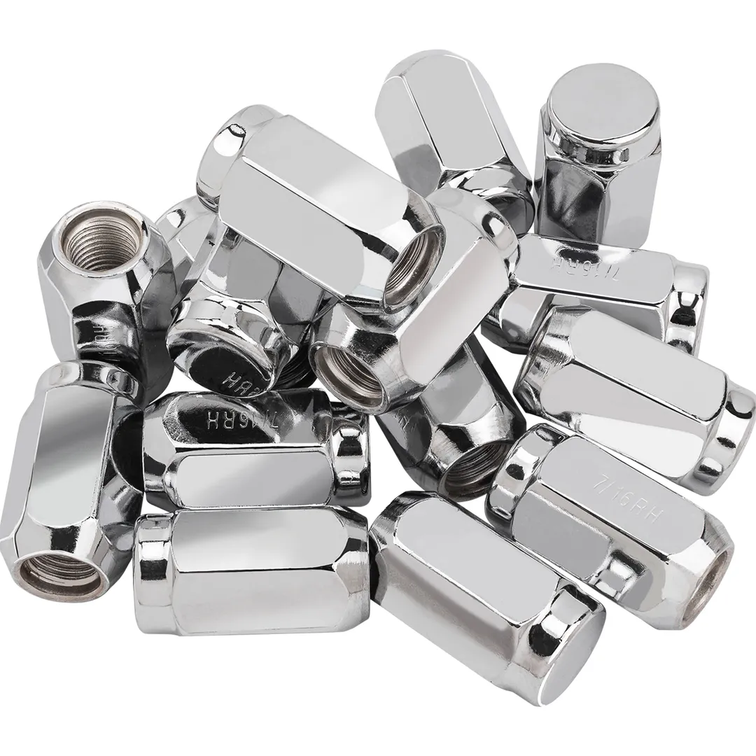 Автомобильные болты и гайки – один из самых ответственных элементов безопасности в любом автомобиле. Автомобильные колесные гайки разработаны с учётом различных условий эксплуатации и соответствуют требованиям к колёсному крепежу мировых производителей автомобилей. Автомобильные колесные гайки в комплекте 16 шт. Высота 35 мм, шестигранник на 19 мм, внутренняя резьба 7/16" .Преимущества работы с нами