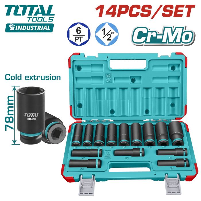 Набор глубоких ударных головок 10-27 мм 1/2" 6-гр 14 пр TOTAL THKISD12143L