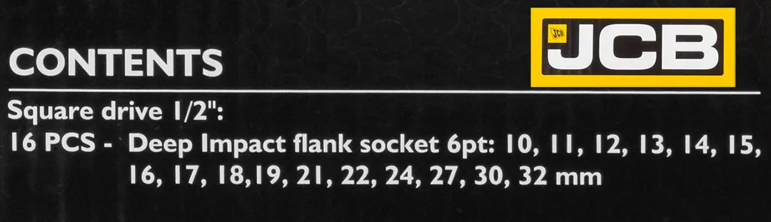 Набор глубоких ударных головок 16 пр., 1/2" 10-32 мм 6-гр JCB JCB-4169-5MPB