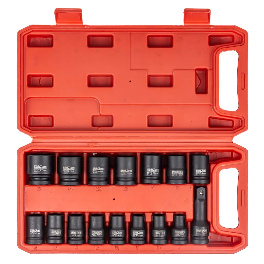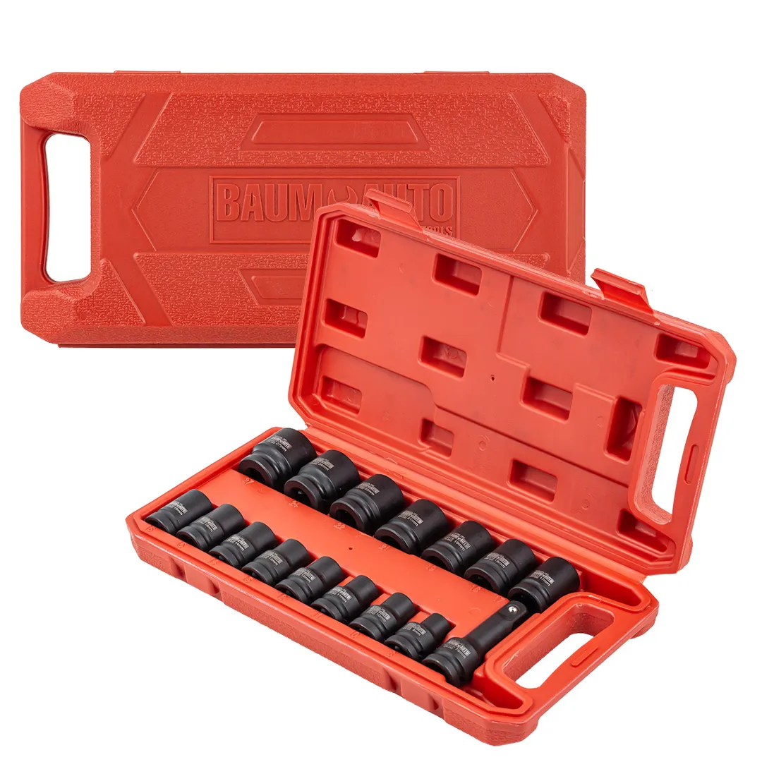 Набор ударных головок 8-27 мм 1/2'' 6- гр 16 пр, удлинитель 75 мм BaumAuto BM-4179-5MPB