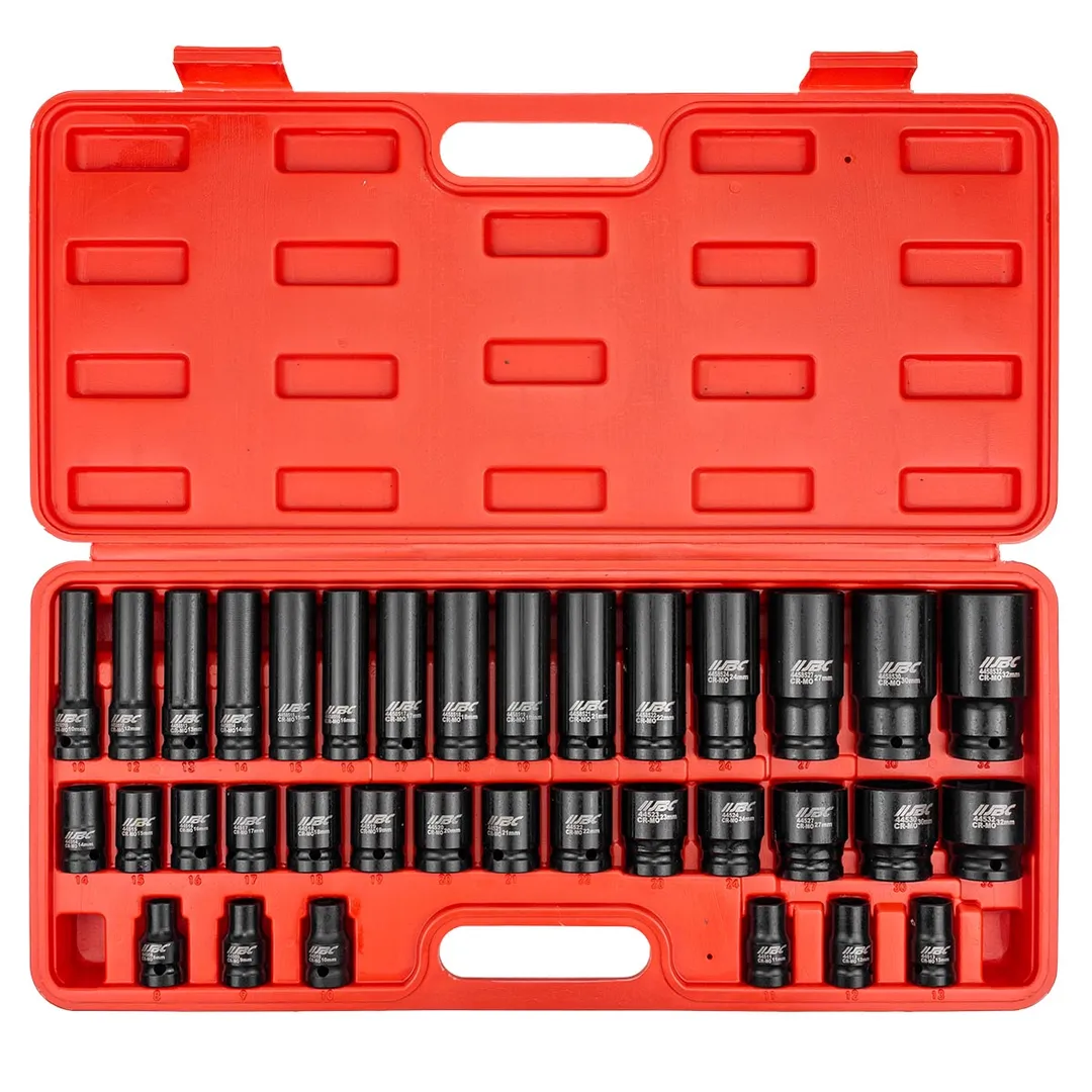 Набор ударных головок 1/2", 6-гр, короткие 38 мм: 8-32 мм, глубокие 78 мм: 10-32 мм, 35 пр JBC JBC-4353-5MPB