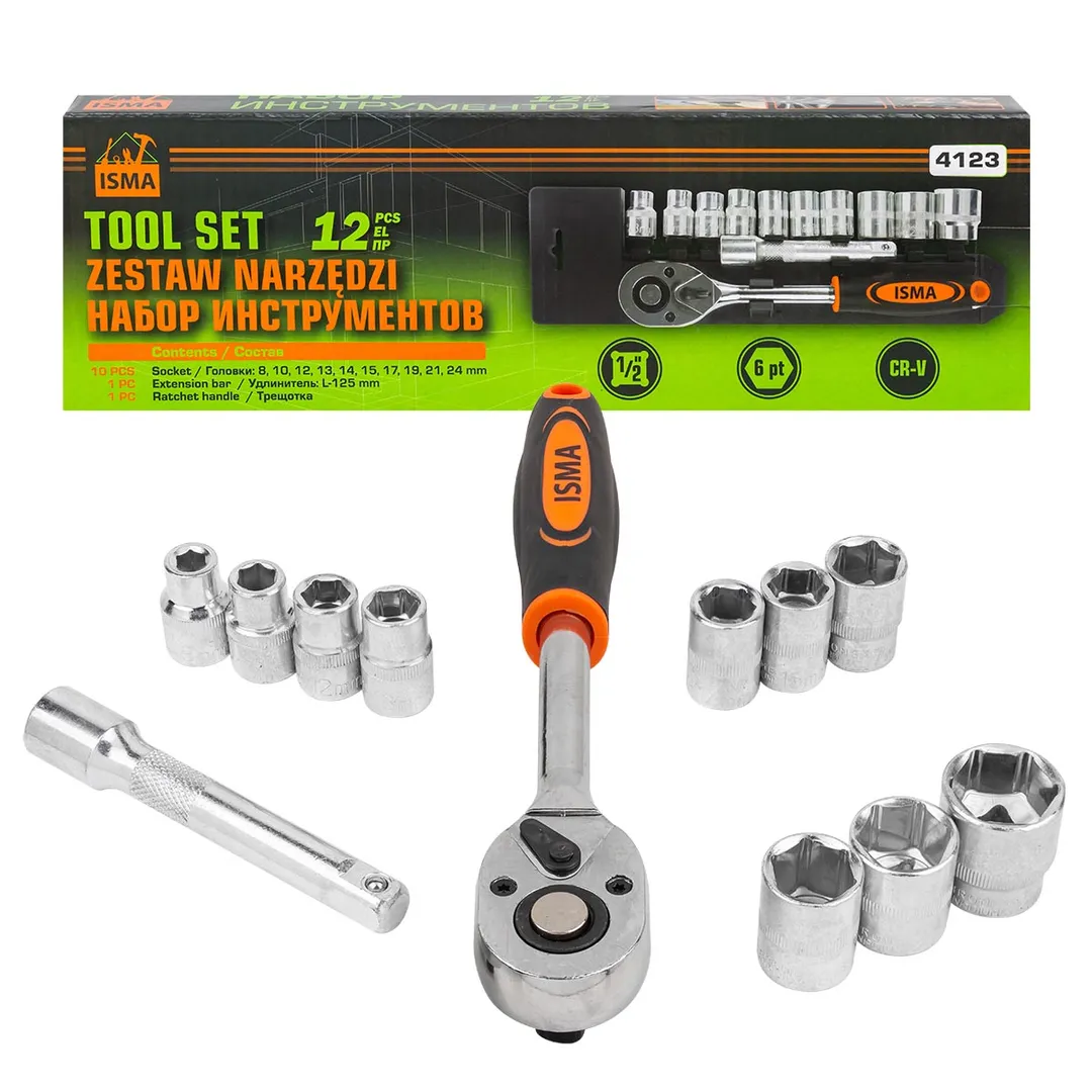 Набор головок 8-24 мм 12 пр. 1/2'', 6-гр. ISMA ISMA-4123