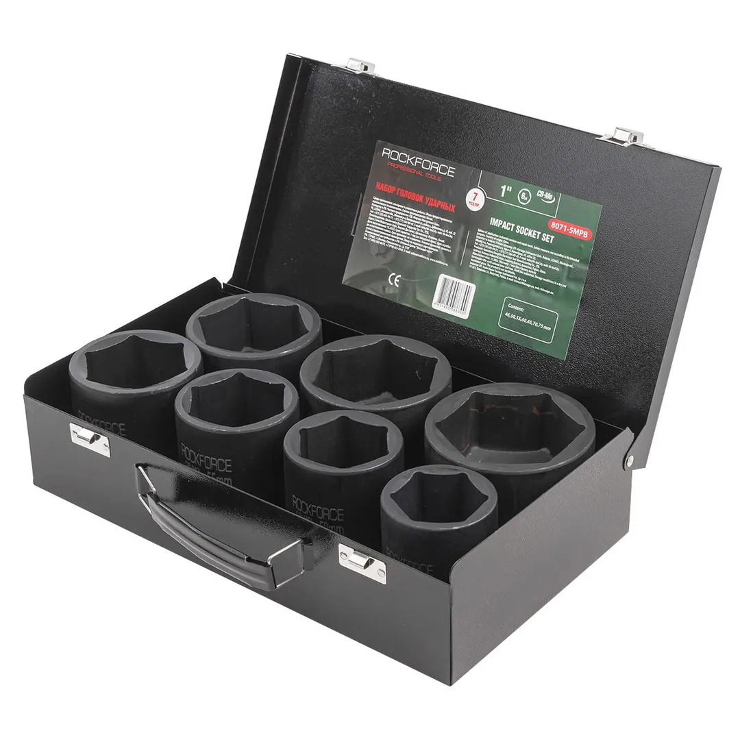 Набор головок ударных 1" 7 пр., 6-гр., 46-75 мм RockForce RF-8071-5MPB, описание и характеристики: