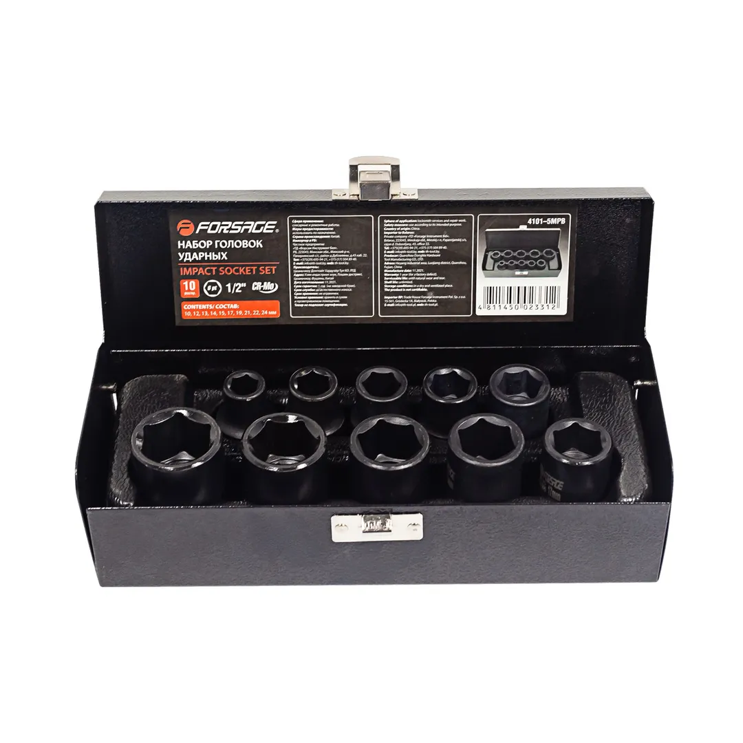 Набор ударных головок 10-24 мм 1/2'' 6-гр 10 пр Forsage F-4101-5MPB