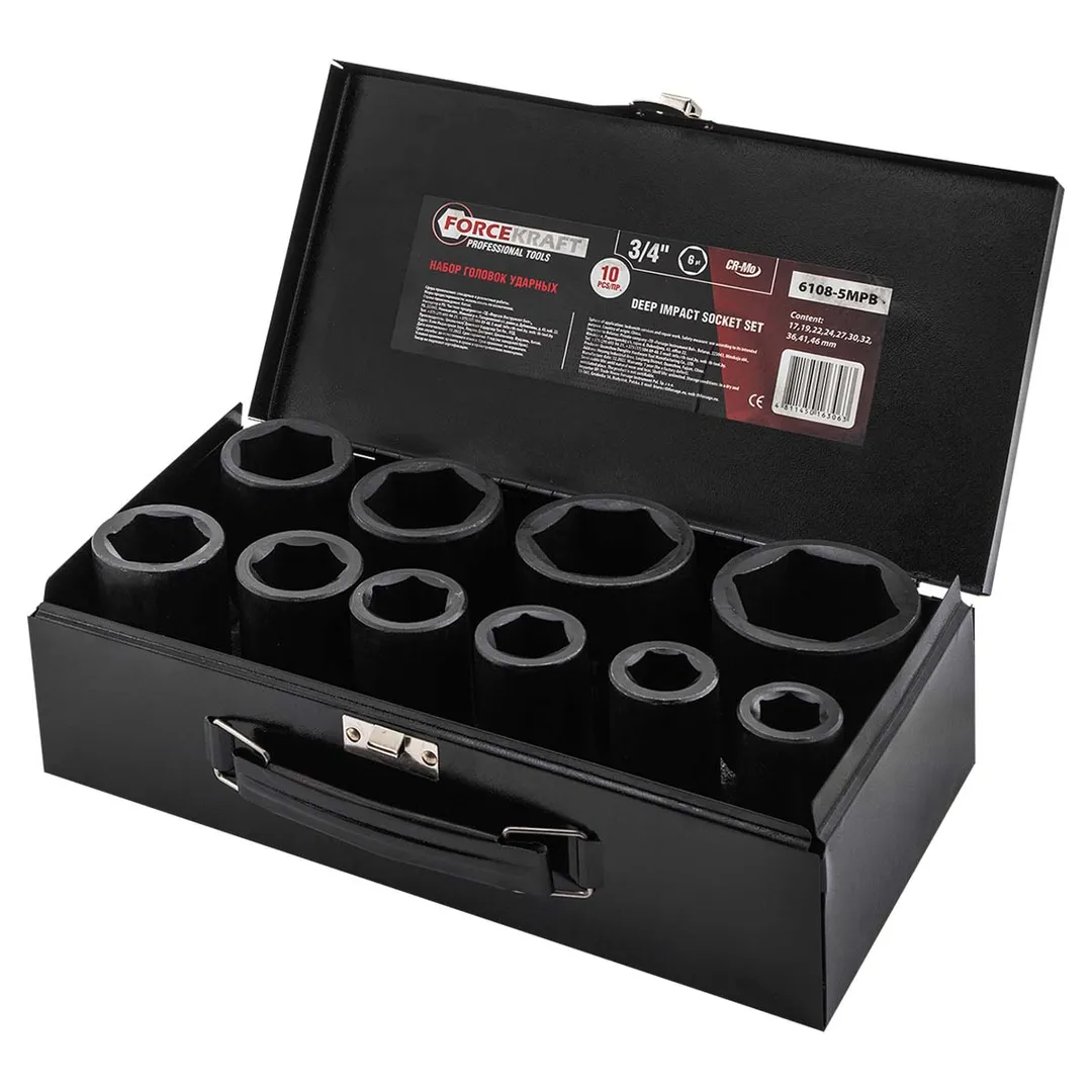 Набор ударных головок 17-46 мм 3/4'' 6-гр 10 пр ForceKraft FK-6108-5MPB